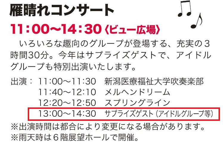 アイドルグループ全体の持ち時間が1時間半なので、NGT48の出演は期待薄でしょうか…