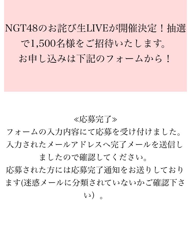 昨日スマートフォンから応募すると、応募完了メールが届かない不具合が発生していましたが、現在は復旧しています。