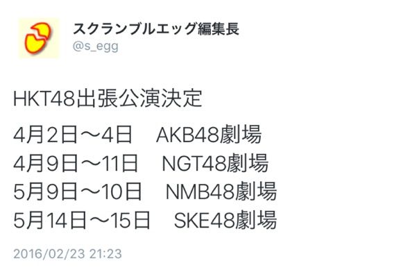 HKT48がNGT48劇場で出張公演を行うことが発表されました。