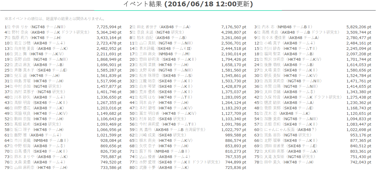 イベントの結果は、総選挙の結果とは関係ないのでご注意下さい。
